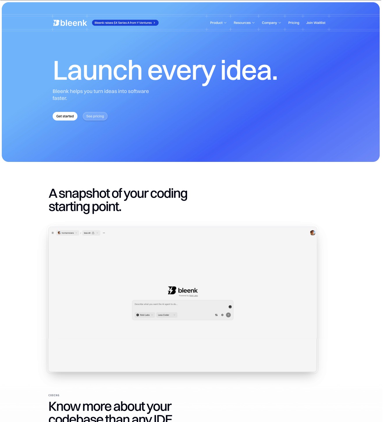 From AI-assisted coding to sandbox testing and instant deployments, Bleenk covers the full development workflow.